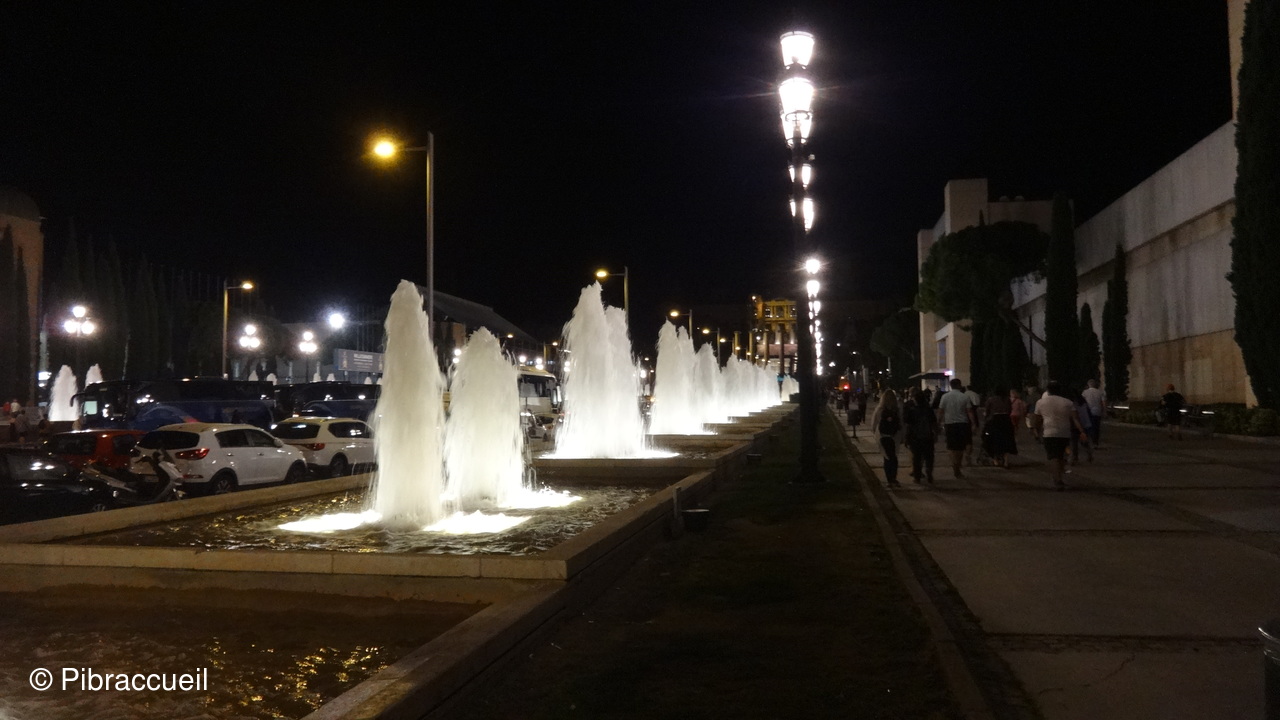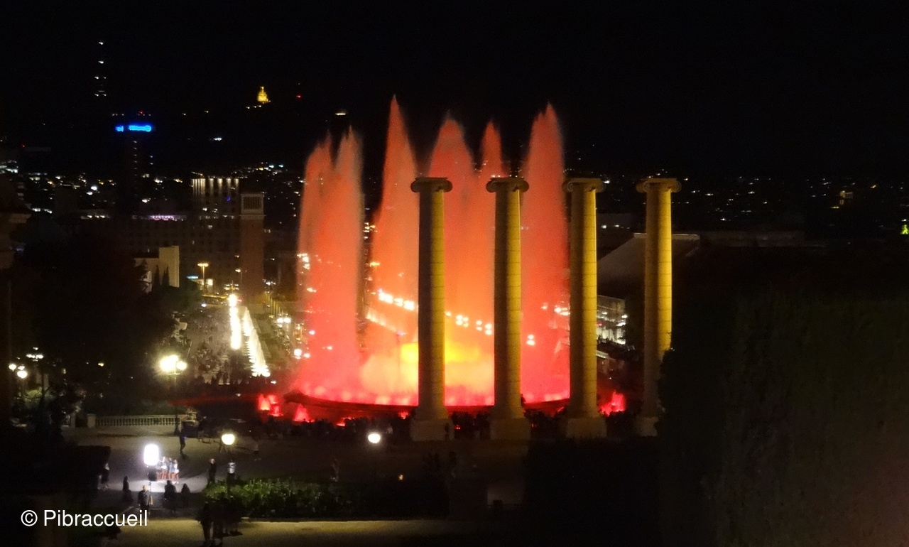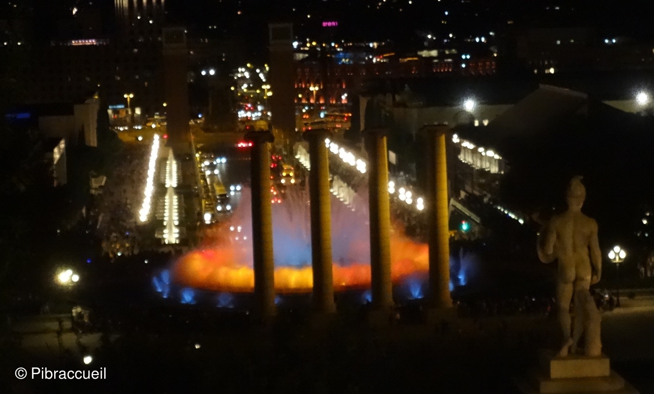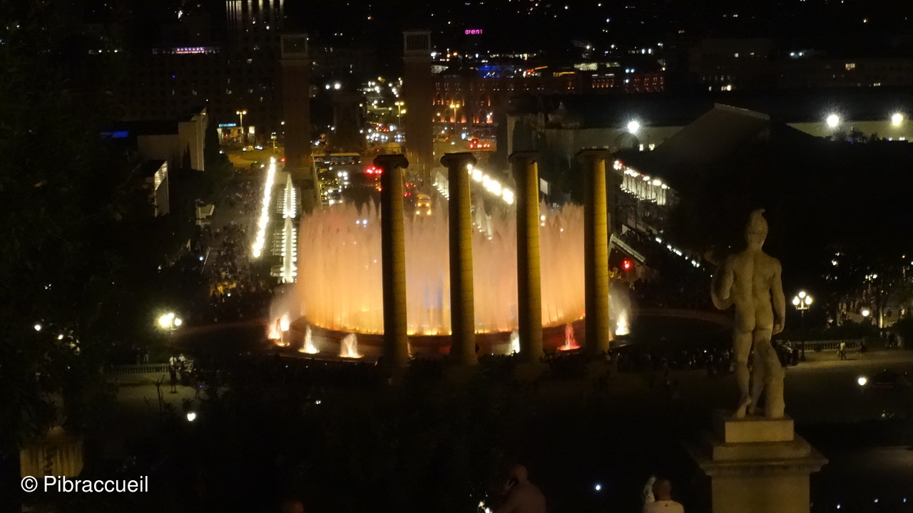 - 21h : Découverte à pied de la fontaine magique de Monjuic, spectacle de sons et lumières entre le "Palau Nacional et la Plaza Espanya", cascades, bassins et 2 rangées de colonnes lumineuses des 2 côtés de l'avenue - Retour à pied