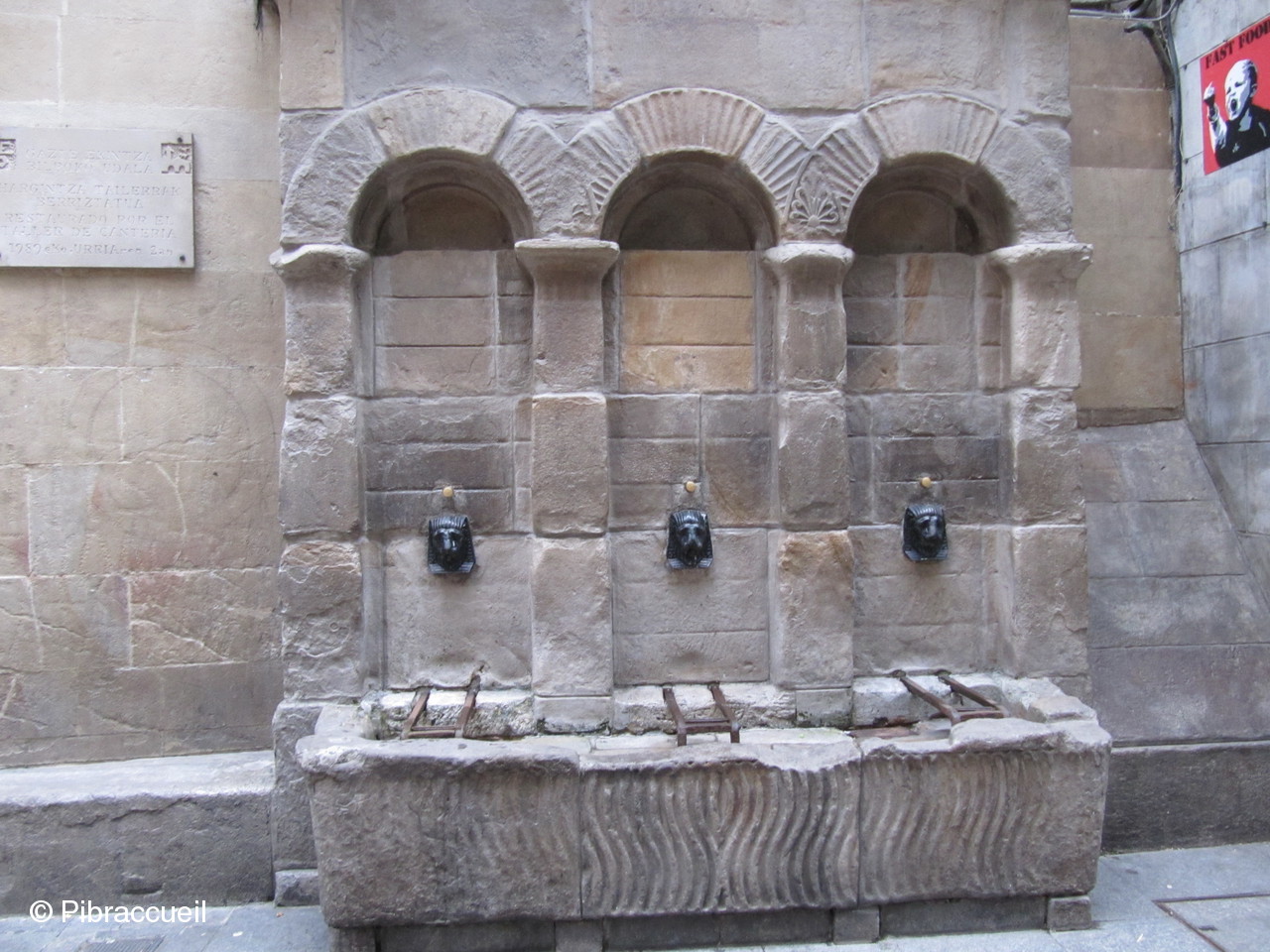 Les trois fontaines dans une rue du vieux Bilbao